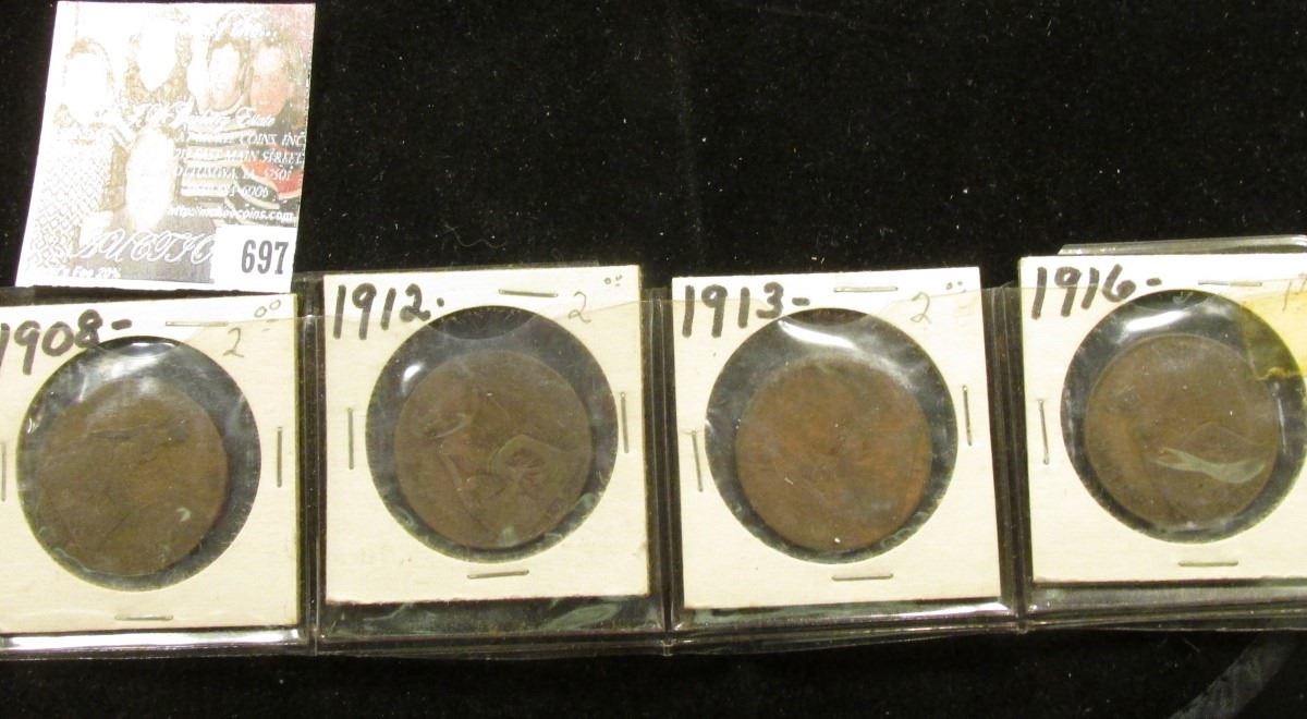 1908, 12, 13, & 16 Great Britain Large Pennies.