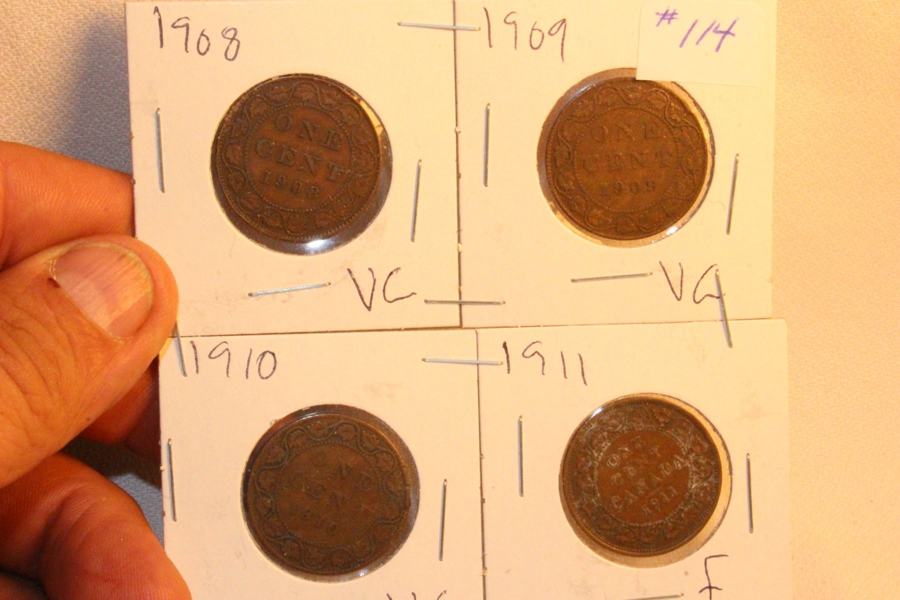 1908;1909;1910; 1911 Dominion of Canada One Cent Coins