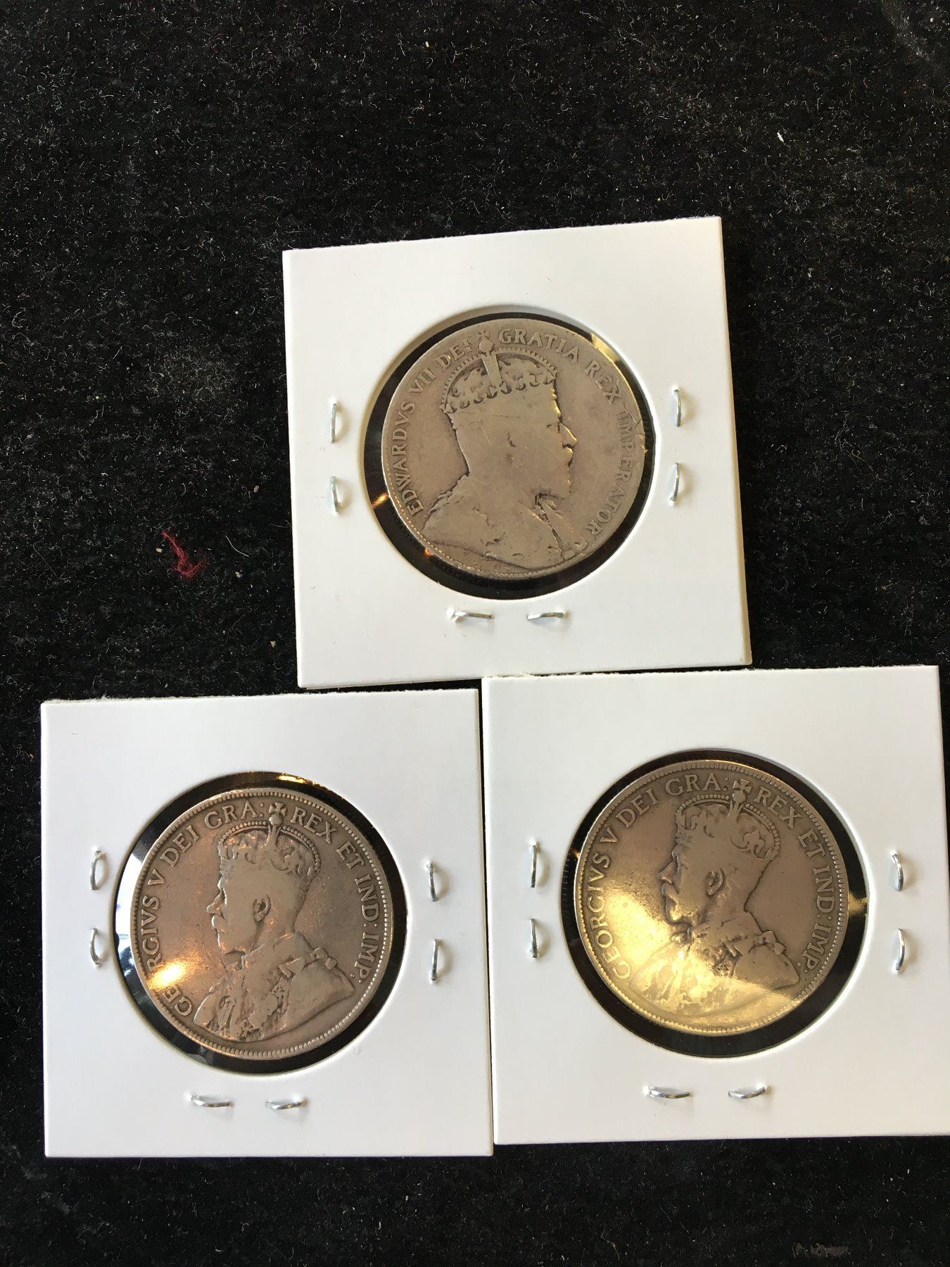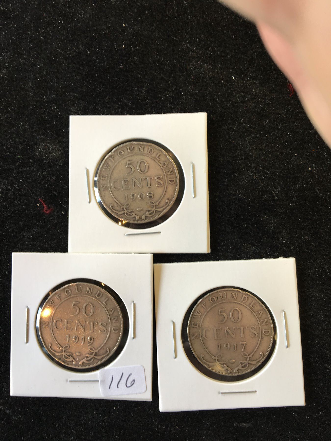 NICE LOT OF 3 NEWFOUNDLAND 50 CENTS! GRADES VG-F..DAMAGED