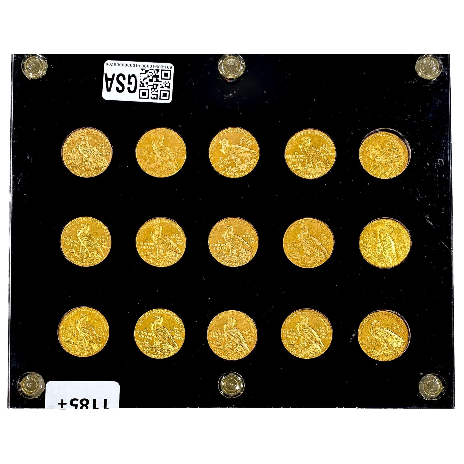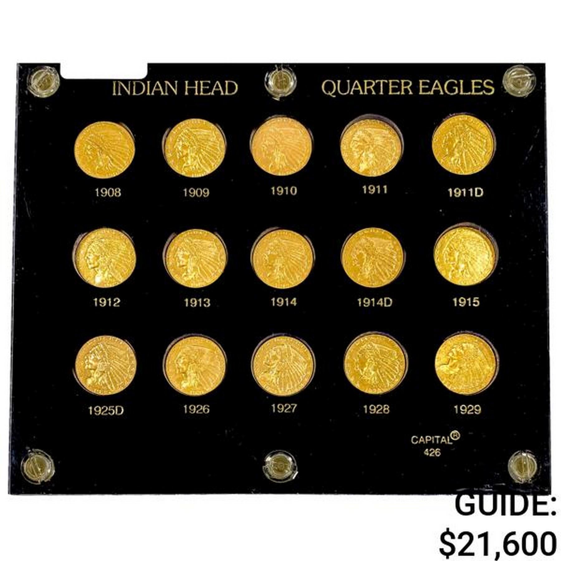 1908-1929 US Gold Quarter Eagle Set [15 Coins]