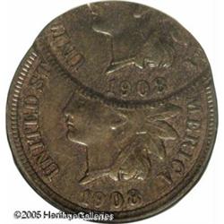 1908 1C Indian Cent--Double Strike, Second Strike 55
