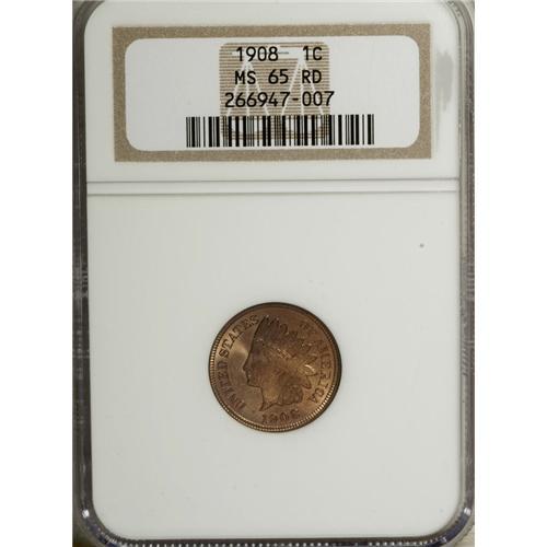 <B>1908 1C MS65 Red NGC.</B></I> NGC Census: (274/66). PCGS Population (219/38). Mintage: 32,327,988. Numismedia Wsl. Price for NGC/PCGS coin in MS65: $440. (#2231)<BR><BR><b>Shipping:</b> Coins & Currency (<a target="_blank" href="http://www.heritageauctions.com/common/shipping.php">view shipping information</a>)