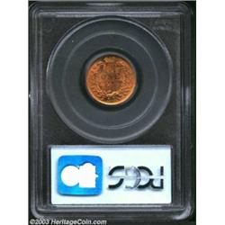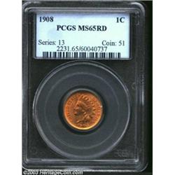 1908 1C MS65 Red PCGS. Snow-7. The upper serif of the 1 in the date is lightly repunched, as is the.