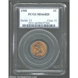1908 1C MS66 Red PCGS. A gorgeous orange-gold Gem that has flashy luster and unabraded surfaces. Sha
