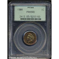 <B>1908 1C PR65 Red PCGS.</B></I> This exquisitely struck Gem provides lemon-orange centers framed by ruby-red and lime peripheries. A few carbon flecks do not challenge the vibrant eye appeal. Encapsulated in a prior generation holder. Population: 26 in 65 Red, 13 finer (2/05).