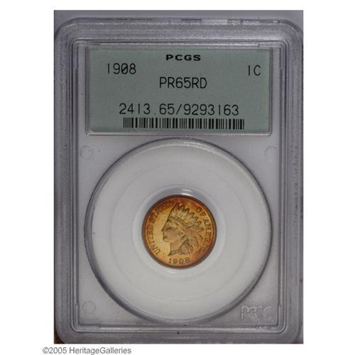 <B>1908<1C> PR65 Red PCGS.</B></I> This exquisitely struck Gem provides lemon-orange centers framed by ruby-red and lime peripheries. A few carbon flecks do not challenge the vibrant eye appeal. Encapsulated in a prior generation holder. Population: 25 in 65, 13 finer (9/05).