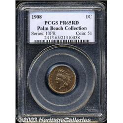 1908 1C PR65 Red PCGS. Generally light lilac-tan surfaces with tinges of orange color in the left obverse field and more colorfully in the areas surrounding the wreath on the reverse. PR65 Red or better specimens from this year represent less than 5 percent of the original mintage. Population: 29 in 65, 12 finer (10/03).From the Palm Beach Collection. Important notice: Heritage usually auctions material at the rate of 200-250 lots per hour. On some occasions eBay Live bid software or the Internet may not be able to keep up with the pace of the auction. We recommend placing a realistic absentee bid now as insurance to avoid disappointment. Occasionally the auctioneer may eliminate or reject an eBay Live bid, and the auctioneer may also reopen a lot after the close of the eBay live bidding (usually because we missed an audience bid), and may reject your bid even if it shows you as the winning bidder. By bidding via eBay Live, you agree that Heritage may award the lot to another bidder at its sole discretion under the circumstances described above or any other reasonable circumstances. Also please note that all Heritage lots purchased through eBay Live carry a 20% Buyer's Premium. Please make sure you read the Terms and Conditions before you bid.