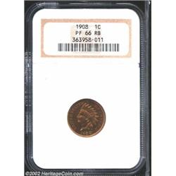 1908 1C PR66 Red and Brown NGC. A well struck and essentially pristine Gem that is dominated by beau
