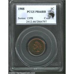 1908 1C PR66 Red and Brown PCGS. Eagle Eye Photo Seal. Mostly cherry-red and lime-green, the fields sparkle with mirror-like intensity. A stunning Red and Brown proof. Population: 7 in 66, 0 finer (10/02).From the "Newmismatist" Collection; the All-Time #1 PCGS Registry Set. Important notice: We expect to be auctioning lots at the rate of 200-250 per hour. Sometimes eBay Premier live bid software cannot keep up with that pace, so we strongly recommend that you place a realistic proxy bid now as insurance to avoid disappointment. Also please note that all Heritage/CAA lots purchased through eBay Premier carry a 20% Buyer's Premium. Please make sure you read the Terms and Conditions.