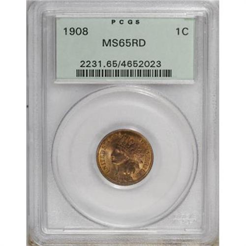 <B>1908 1C MS65 Red PCGS.</B></I> PCGS Population (221/39). NGC Census: (137/33). Mintage: 32,327,988. Numismedia Wsl. Price for NGC/PCGS coin in MS65: $440. (#2231)<BR><BR><B>Coin Engraver:</B> James B. Longacre<BR><BR><b>Shipping:</b> Coins & Currency (<a target="_blank" href="http://www.heritageauctions.com/common/shipping.php">view shipping information</a>)