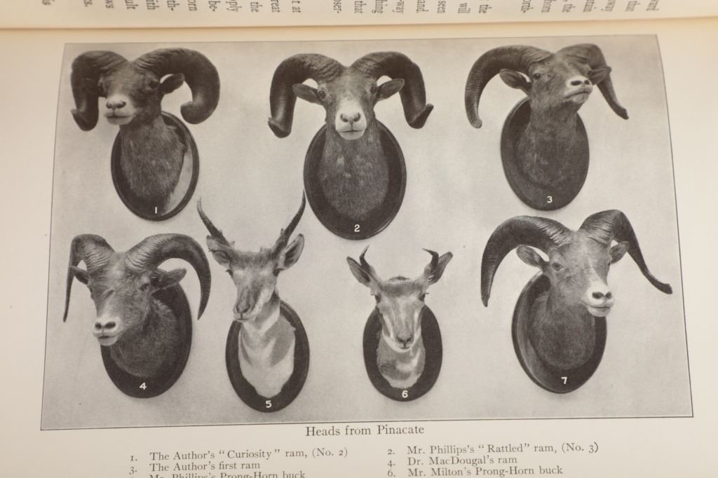 Featured in this lot is this 19080 first edition copy of Cap-Fires on Desert and Lava by William T. Hornady and photographically illustrated by Dr. Daniel Trembly MacDougal, Mr. John M. Phillips, and the author. The book is the accounts of an expedition to uncharted areas of Arizona and Mexico just after the turn of the century from a famous hunter/ naturalist. The condition of this book is is fair to good with light wear to the outside cover and shows some wear to the inside binding of the book but otherwise in fair to good overall condition. The measurements of this book are 9 1/4" x 6 1/4" x 1 3/4".