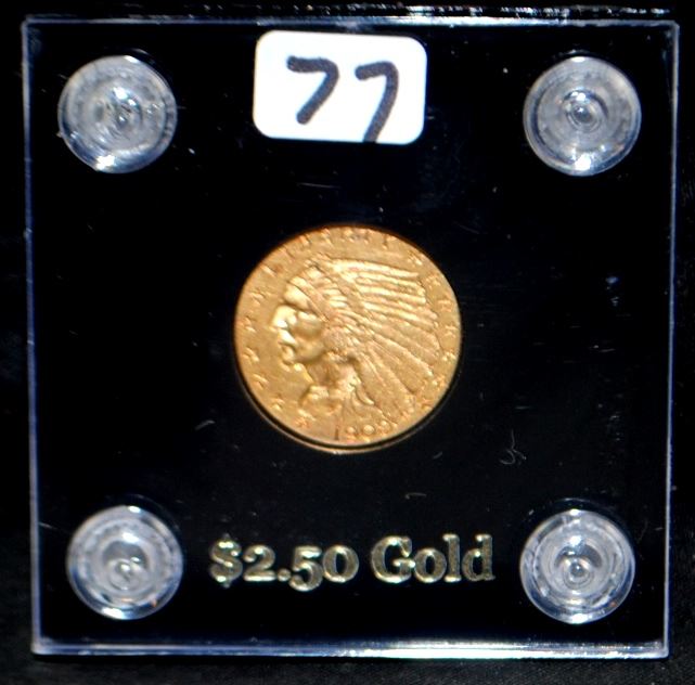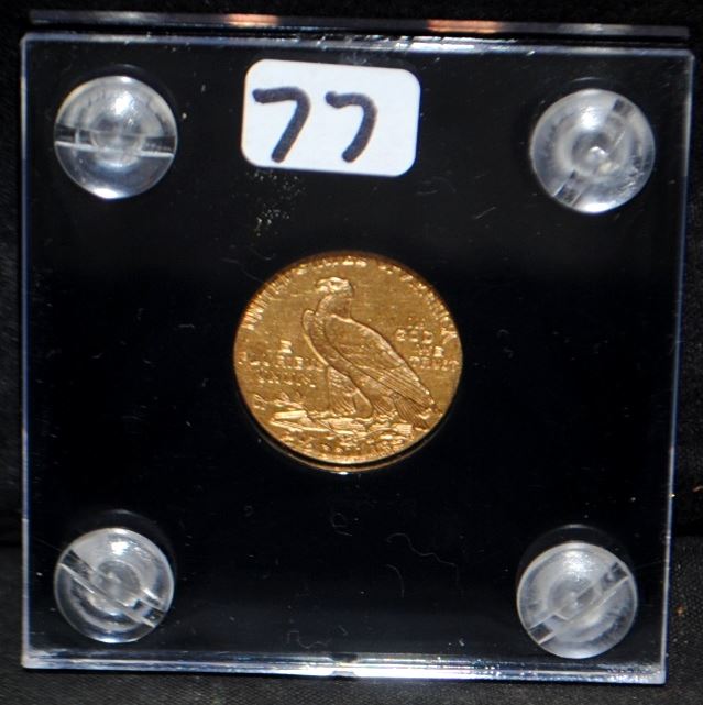 1908 $2 1/2 INDIAN GOLD COIN FROM SAFE DEPOSIT - SELLER GRADES @ AU (THE CURRENT COIN WORLD TRENDS LISTS AN AU50 @ $325.00 AND AN AU58 @ $350.00)