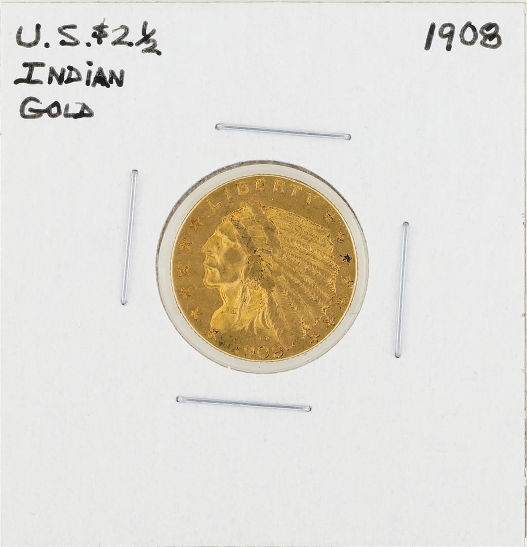 One 1908 $2 1/2 Indian Head Gold Coin.