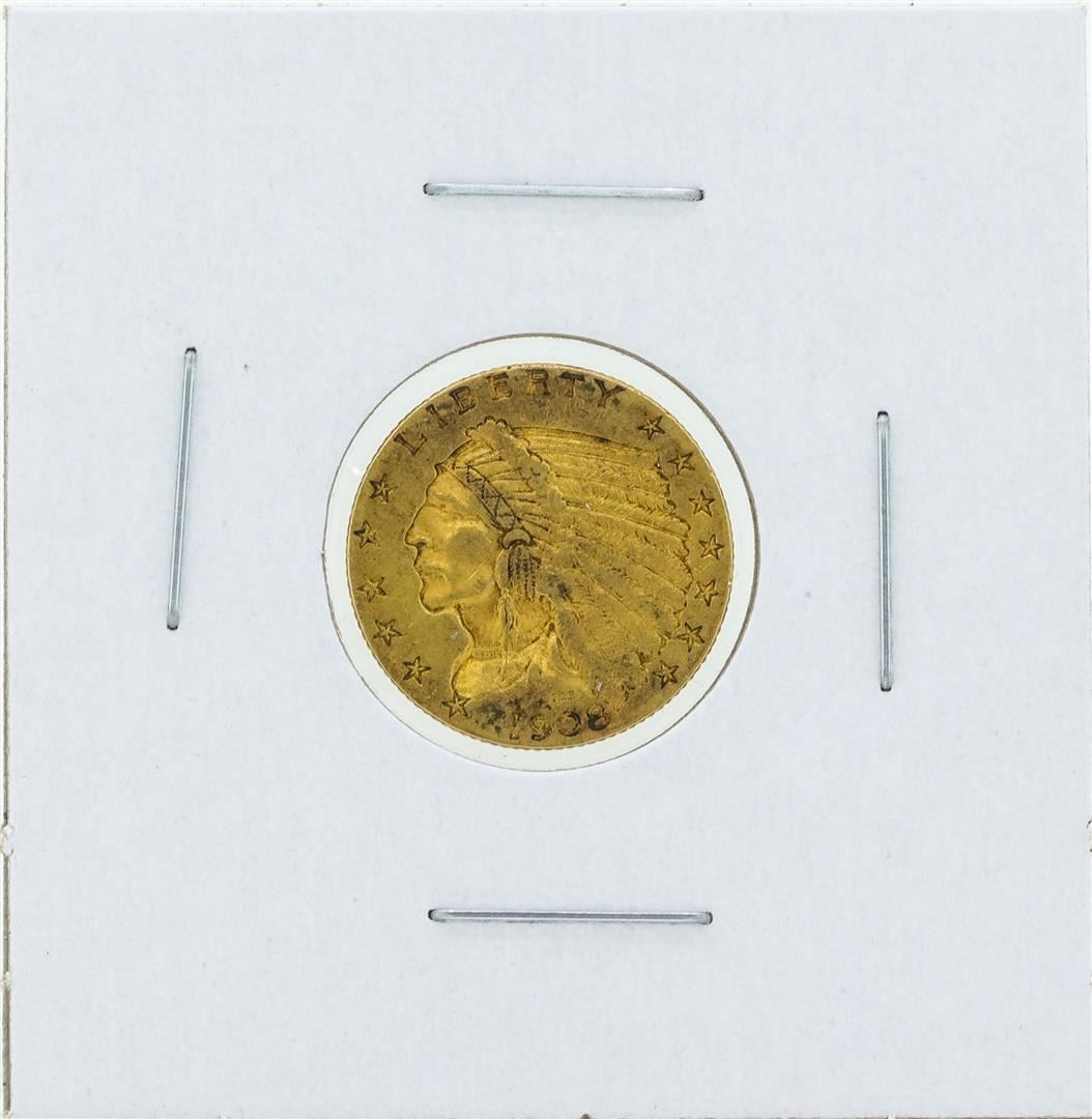 One 1908 $2 1/2 Indian Head Quarter Eagle Gold Coin.