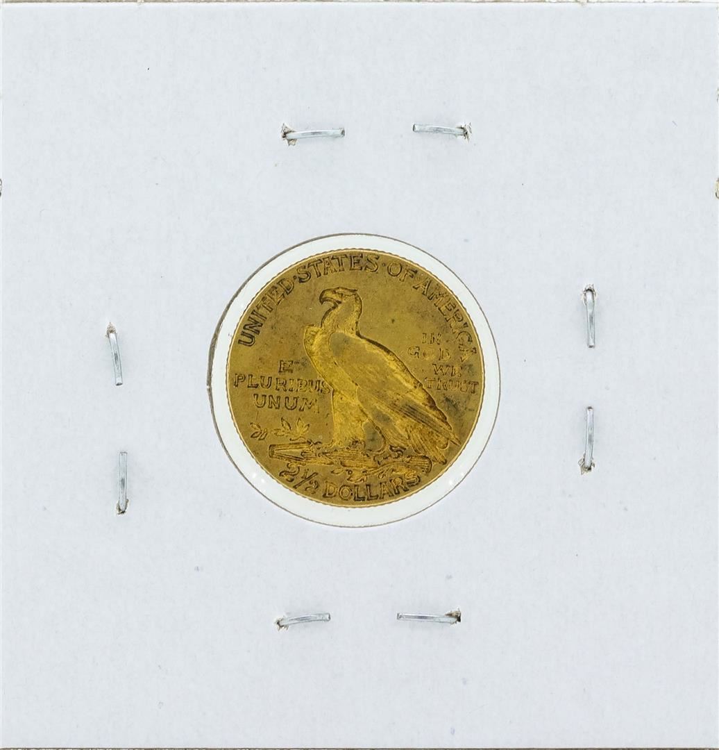 One 1908 $2 1/2 Indian Head Quarter Eagle Gold Coin.