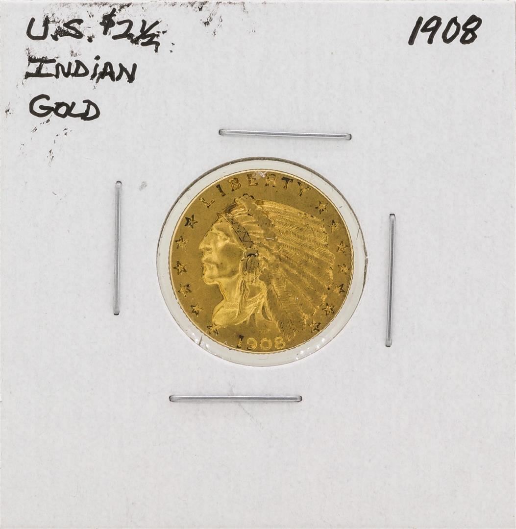 One 1908 $2 1/2 Indian Head Quarter Eagle Gold Coin.