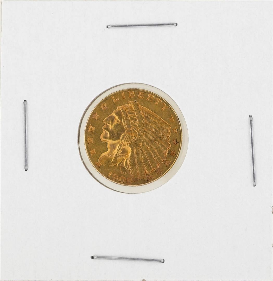 One 1908 $2 1/2 Indian Head Quarter Eagle Gold Coin.