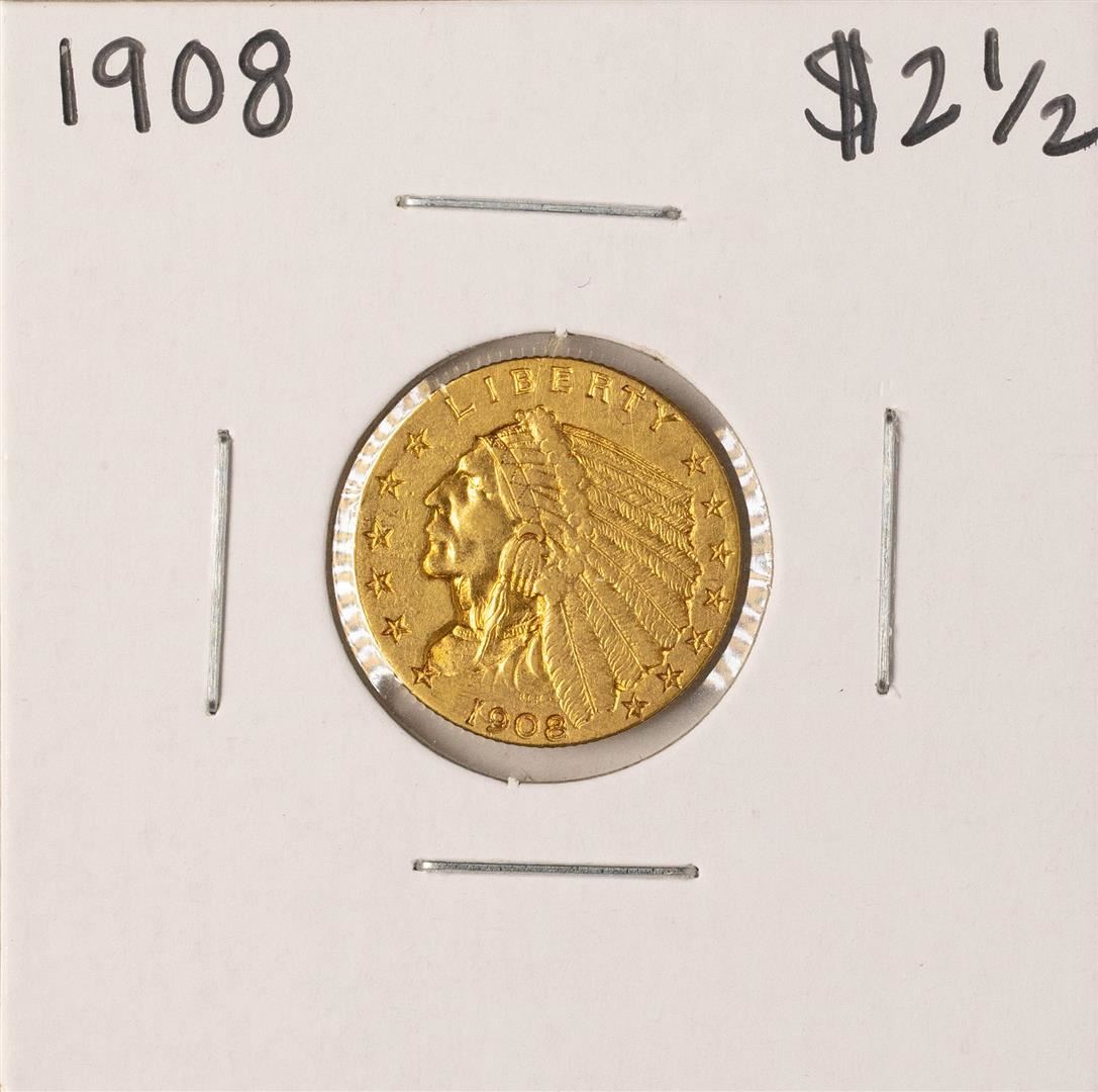 One 1908 $2 1/2 Indian Head Quarter Eagle Gold Coin.