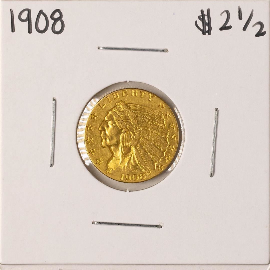 One 1908 $2 1/2 Indian Head Quarter Eagle Gold Coin.