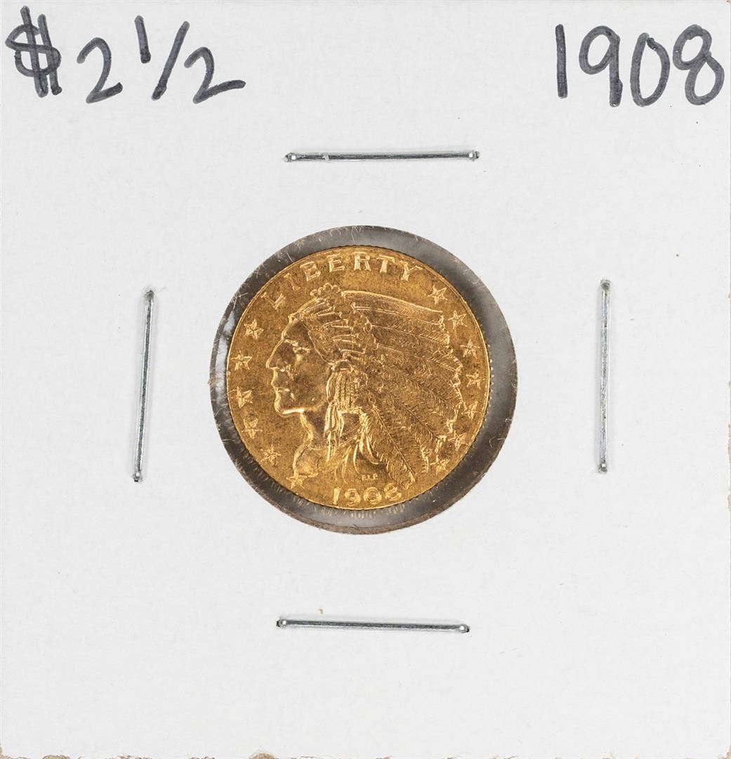 One 1908 $2 1/2 Indian Head Quarter Eagle Gold Coin.