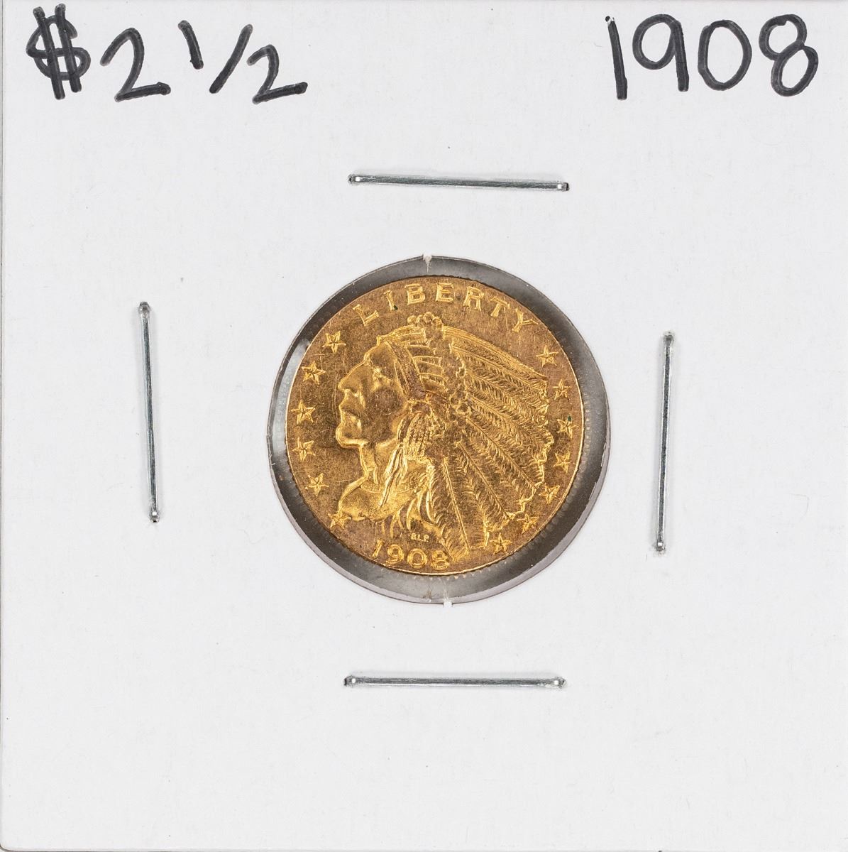 One 1908 $2 1/2 Indian Head Quarter Eagle Gold Coin.
