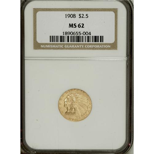 1908 $2 1/2 MS62 NGC. NGC Census: (1834/2323). PCG