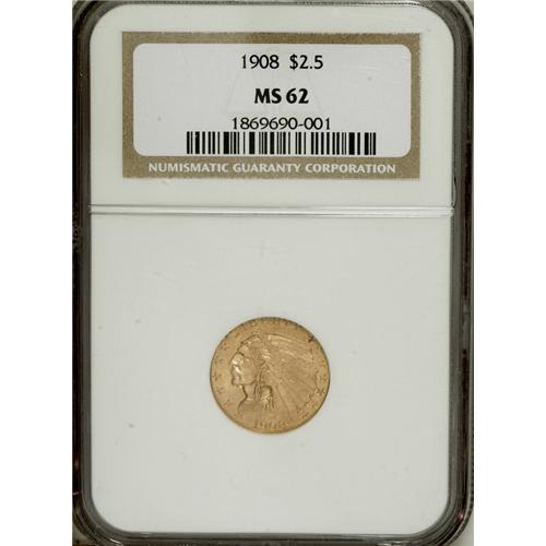 1908 $2 1/2 MS62 NGC. NGC Census: (1835/2350). PCG