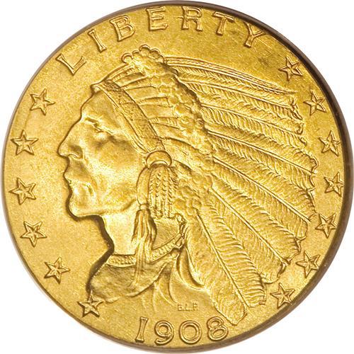 <B>1908 $2 1/2 MS63 PCGS.</B></I> This satiny quarter eagle is delightfully free of prominent marks, and the piece also benefits from a good strike and radiant yellow-gold toning.<BR><BR><b>Shipping:</b> Coins & Currency (<a target="_blank" href="http://www.heritageauctions.com/common/shipping.php">view shipping information</a>)