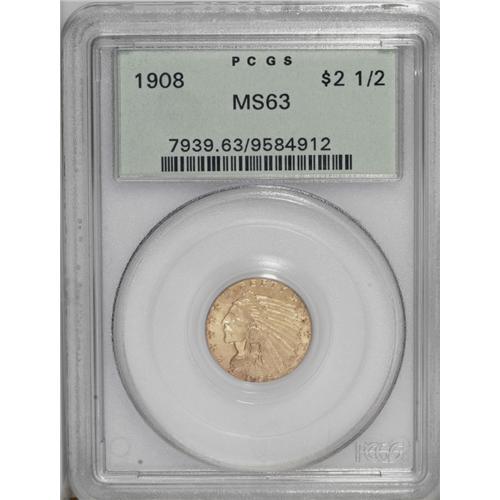 1908 $2 1/2 MS63 PCGS. This well struck introductory y