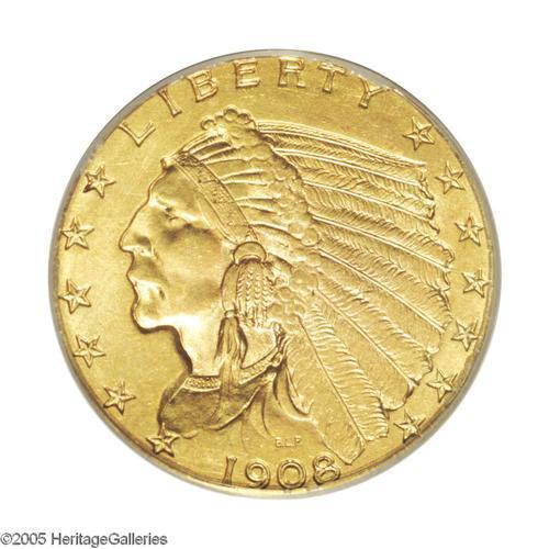 1908 $2 1/2 MS64 PCGS. Sharply struck, with a couple o 1908[$2 1/2] MS64 PCGS.