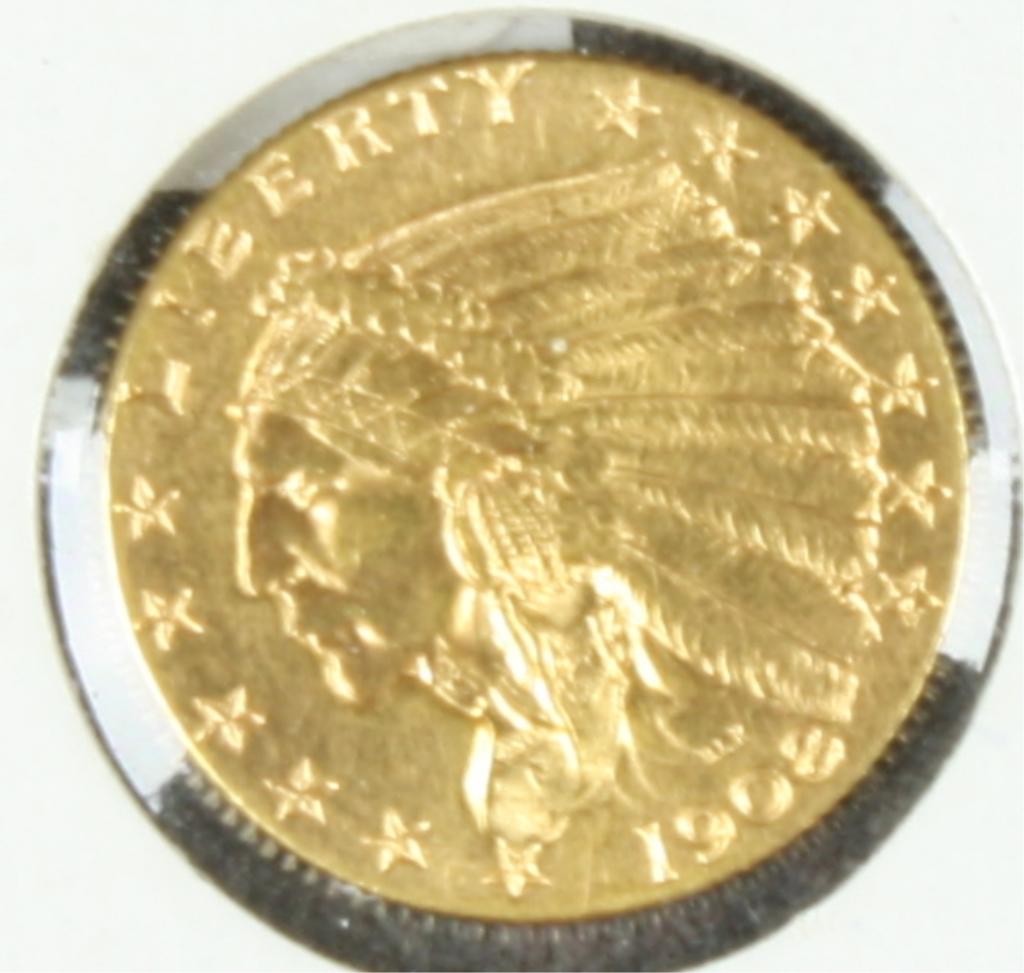 1908 $2 1/2 U.S. Indian Gold Coin, uncirculated, not professionally graded. Est. $300-$600