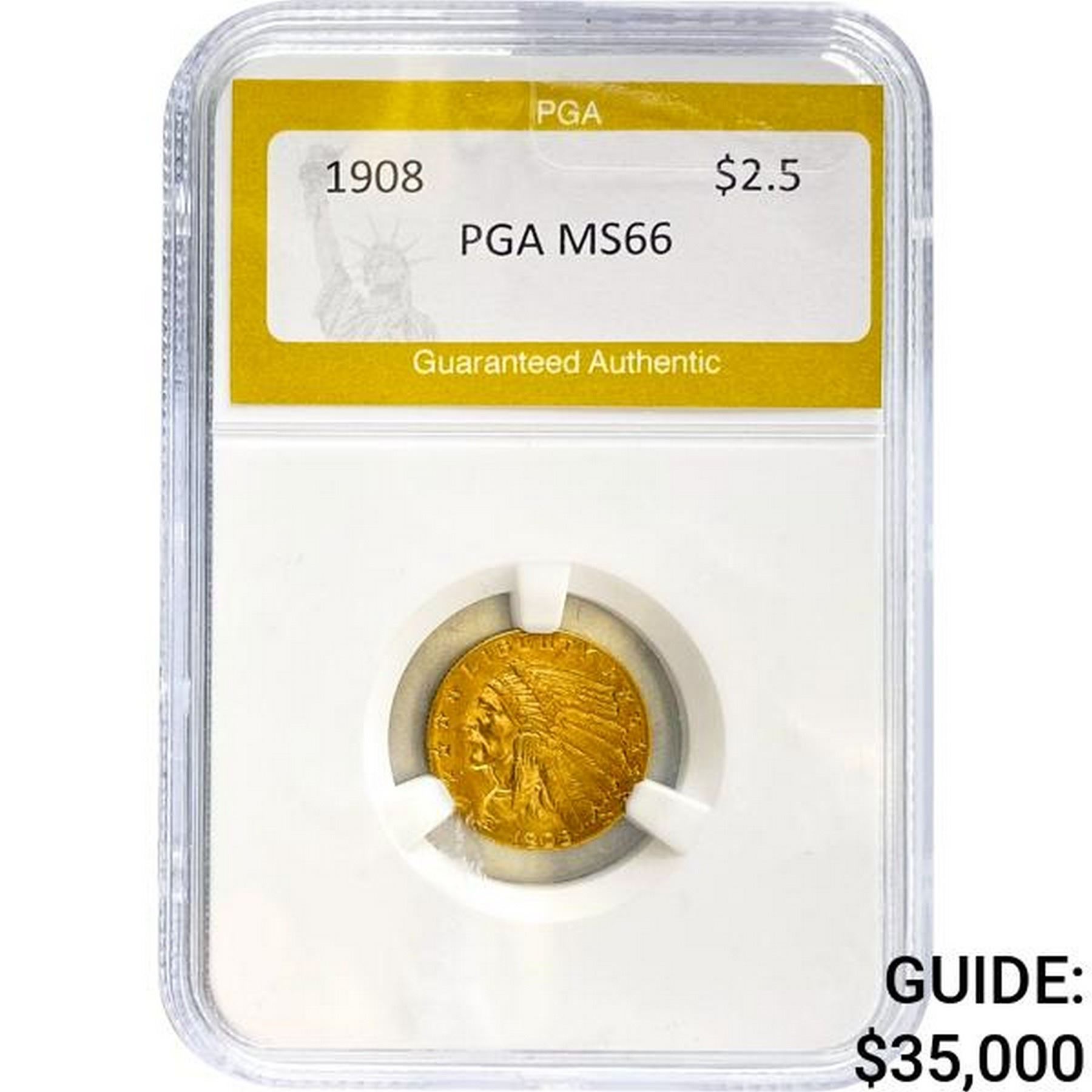 1908 $2.5 Indian Head PGA MS66