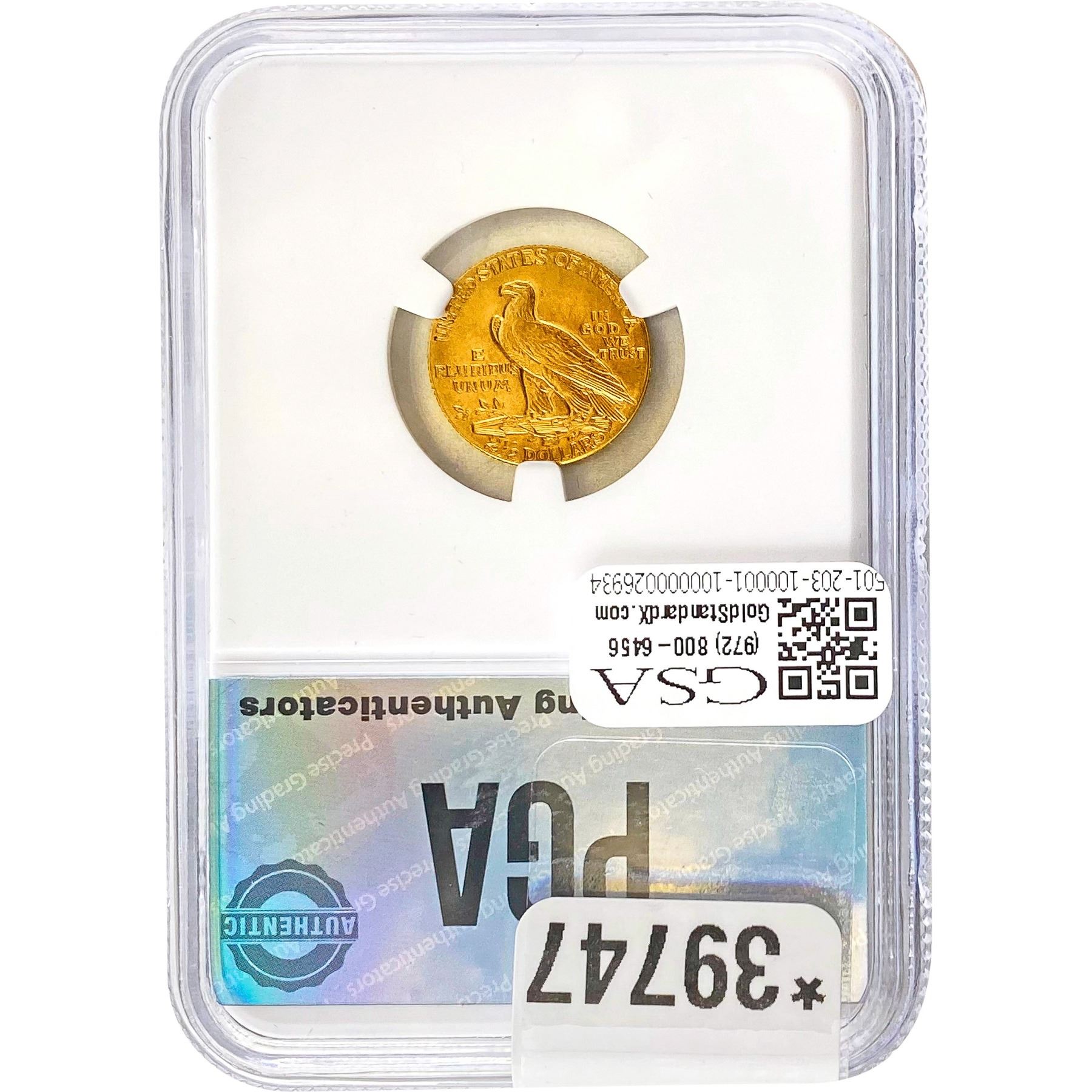 e. Coins sold referencing a third-party grading service are sold “AS IS” without any express or implied warranty, except for a guarantee by GSA that they are genuine. Removal or alteration of the holder, voids all of Bidder’s claims concerning that Product. Certain warranties may be available from the grading services and Bidders are referred to them for further details: Numismatic Guaranty Corporation (NGC), PO Box 4776, Sarasota, FL 34230, www.ngccoin.com/services/writtenguarantee.asp; Professional Coin Grading Services (PCGS), PO Box 9458, Newport Beach, CA 92658, www.pcgs.com/guarantee.html; ANACS, 6555 S. Kenton St., Ste. 303, Englewood, CO 80111; and Independent Coin Grading Co. (ICG), 7901 East Bellview, Ave., Suite 50, Englewood, CO 80111.