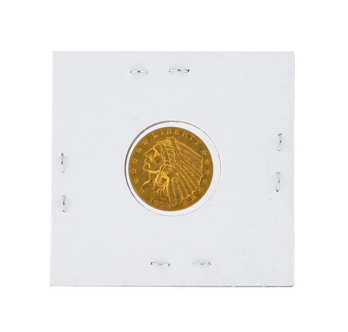 One 1908 $2.50 BU Indian Head Quarter Eagle Gold Coin.