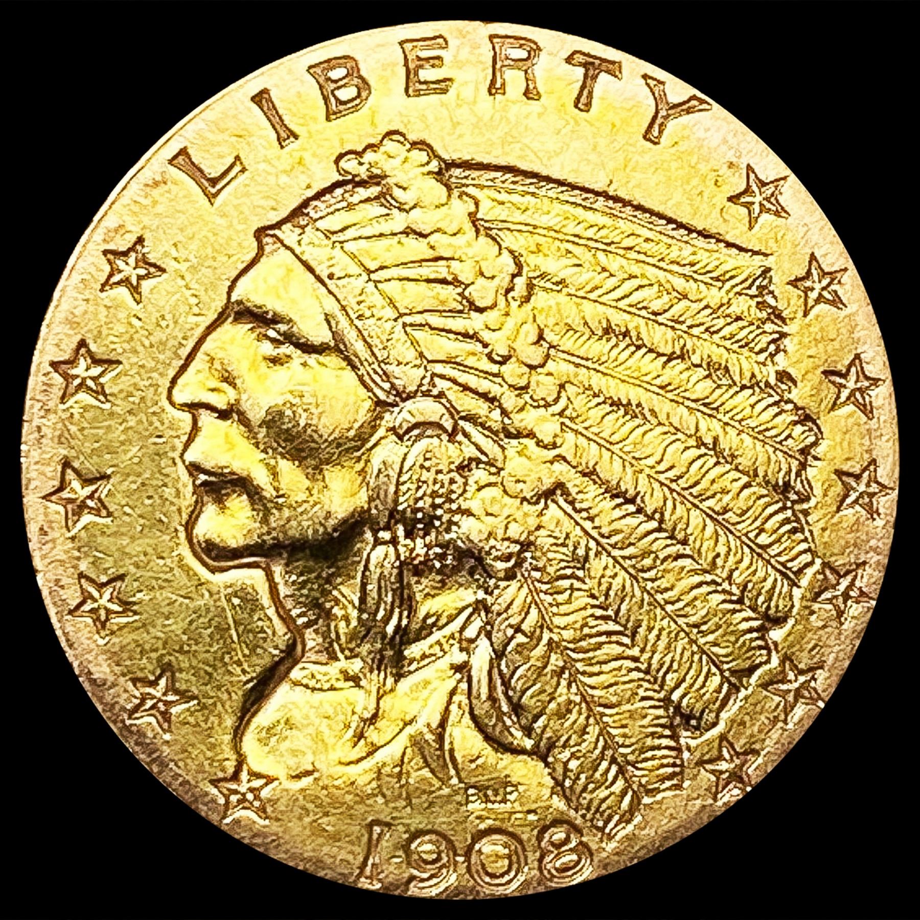 1908 $2.50 Gold Quarter Eagle CLOSELY UNCIRCULATED