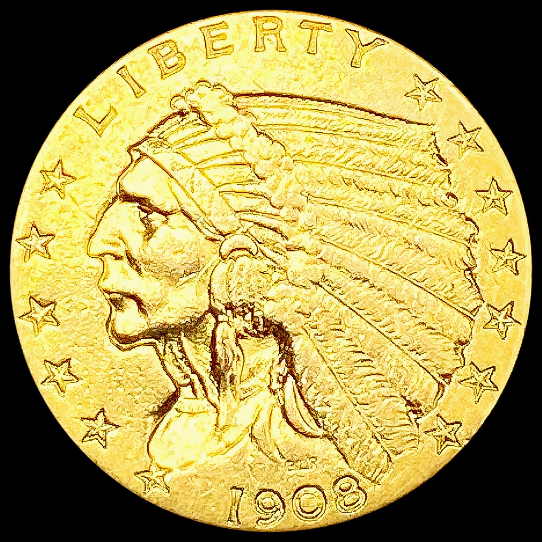 1908 $2.50 Gold Quarter Eagle CLOSELY UNCIRCULATED