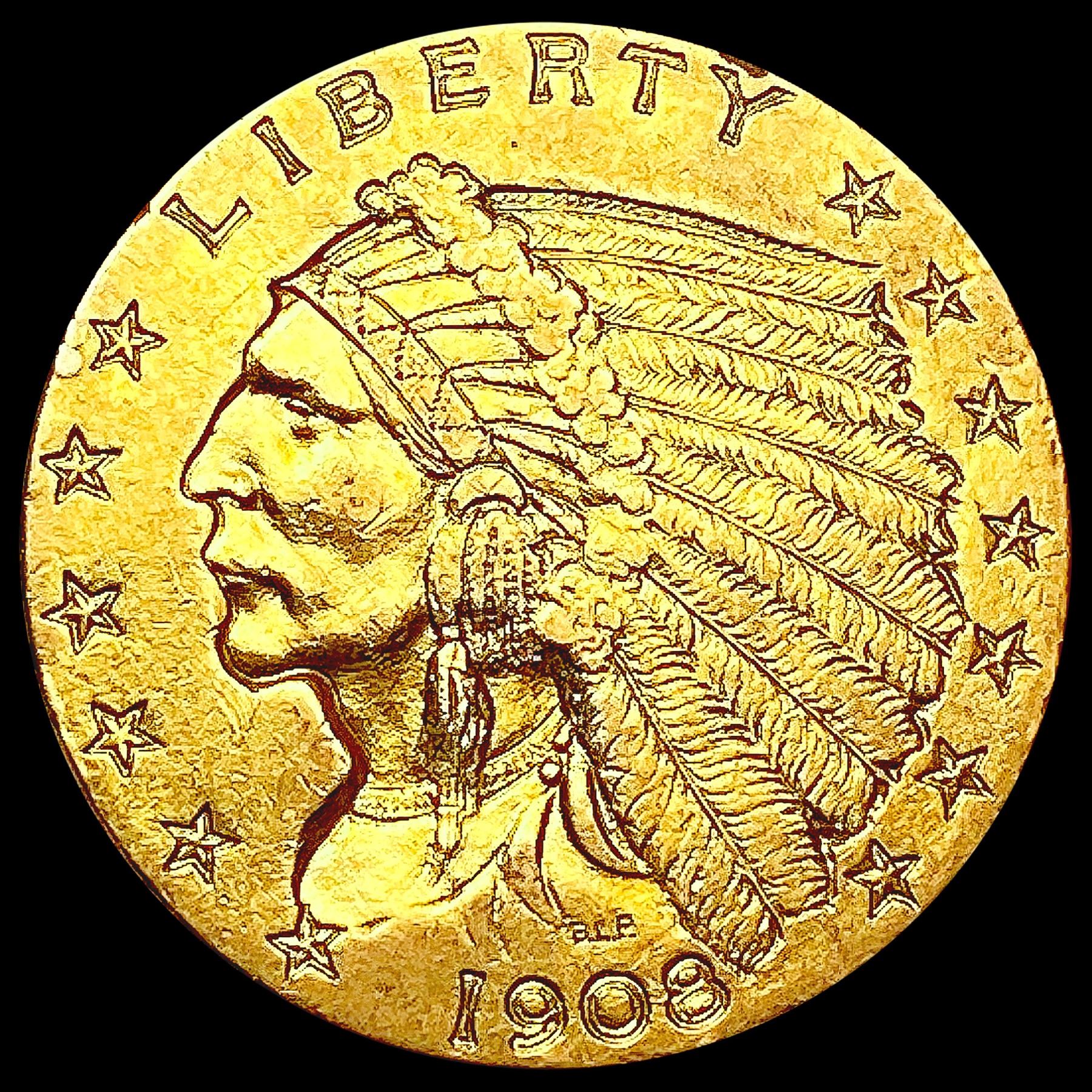 1908 $2.50 Gold Quarter Eagle CLOSELY UNCIRCULATED