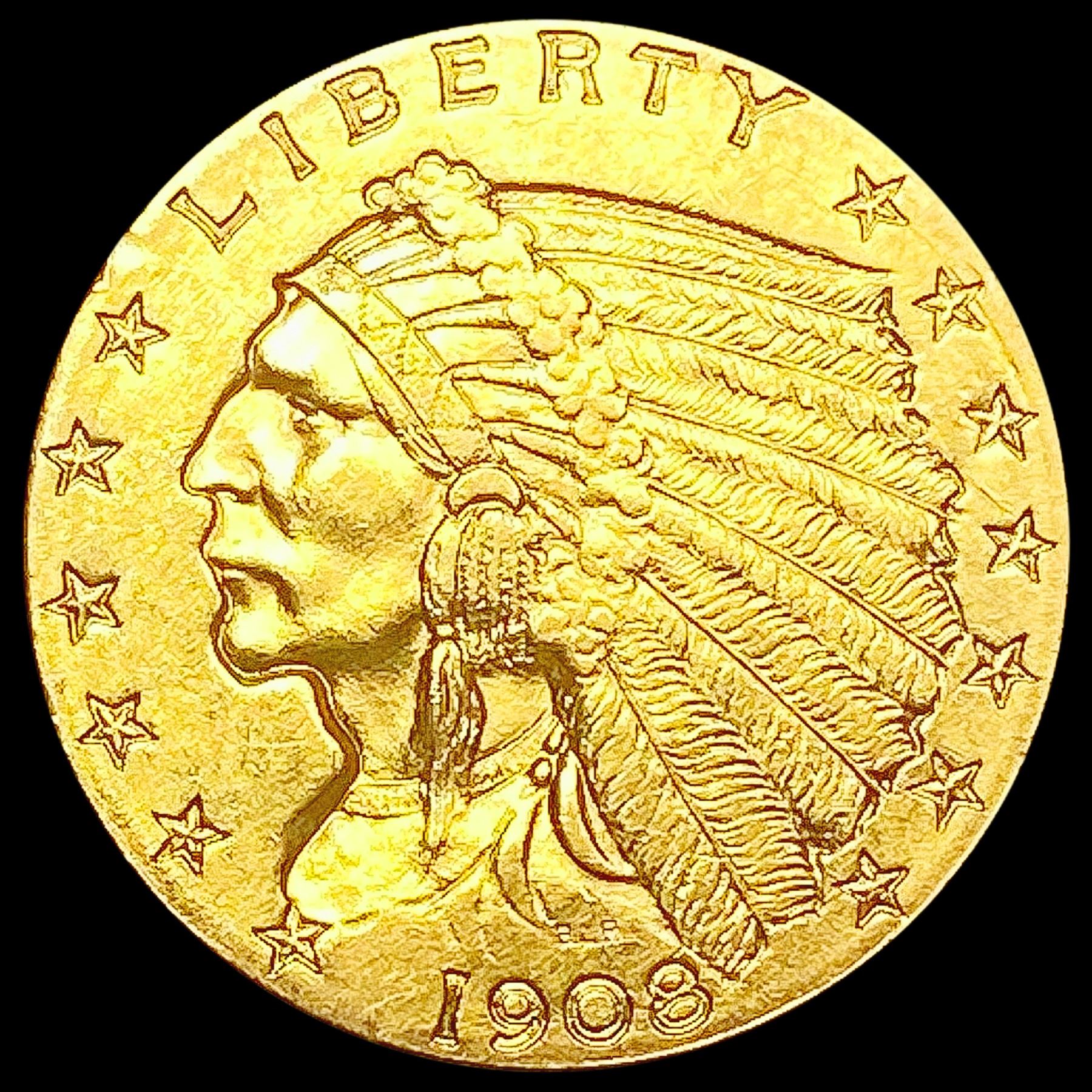 1908 $2.50 Gold Quarter Eagle CLOSELY UNCIRCULATED