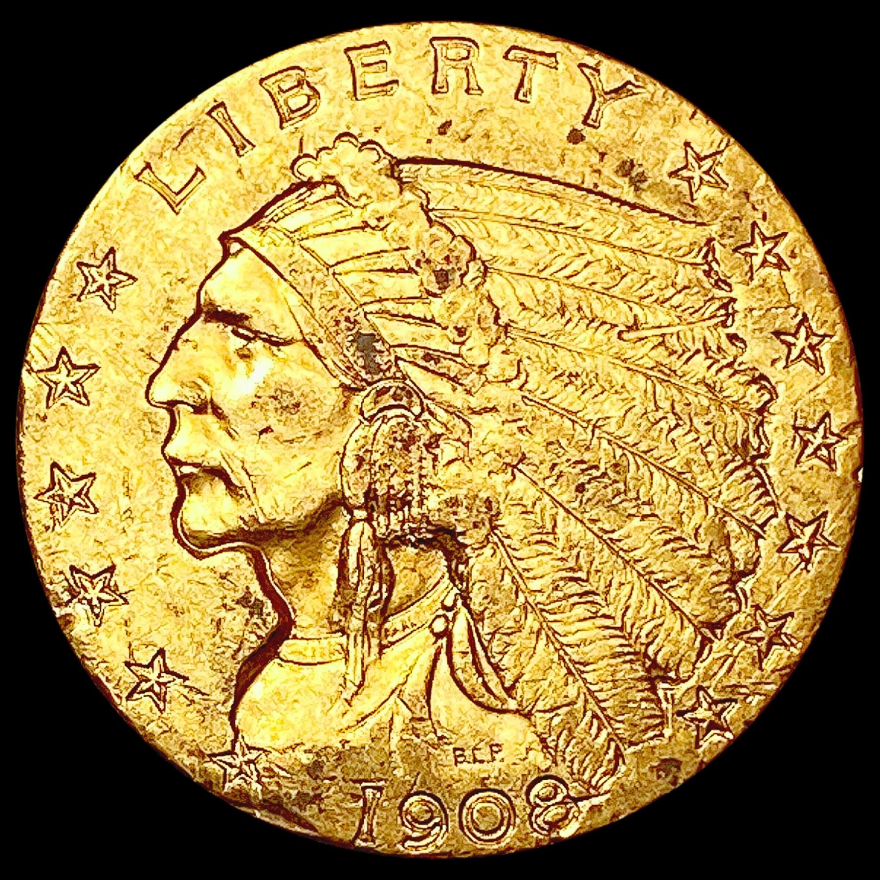 1908 $2.50 Gold Quarter Eagle CLOSELY UNCIRCULATED