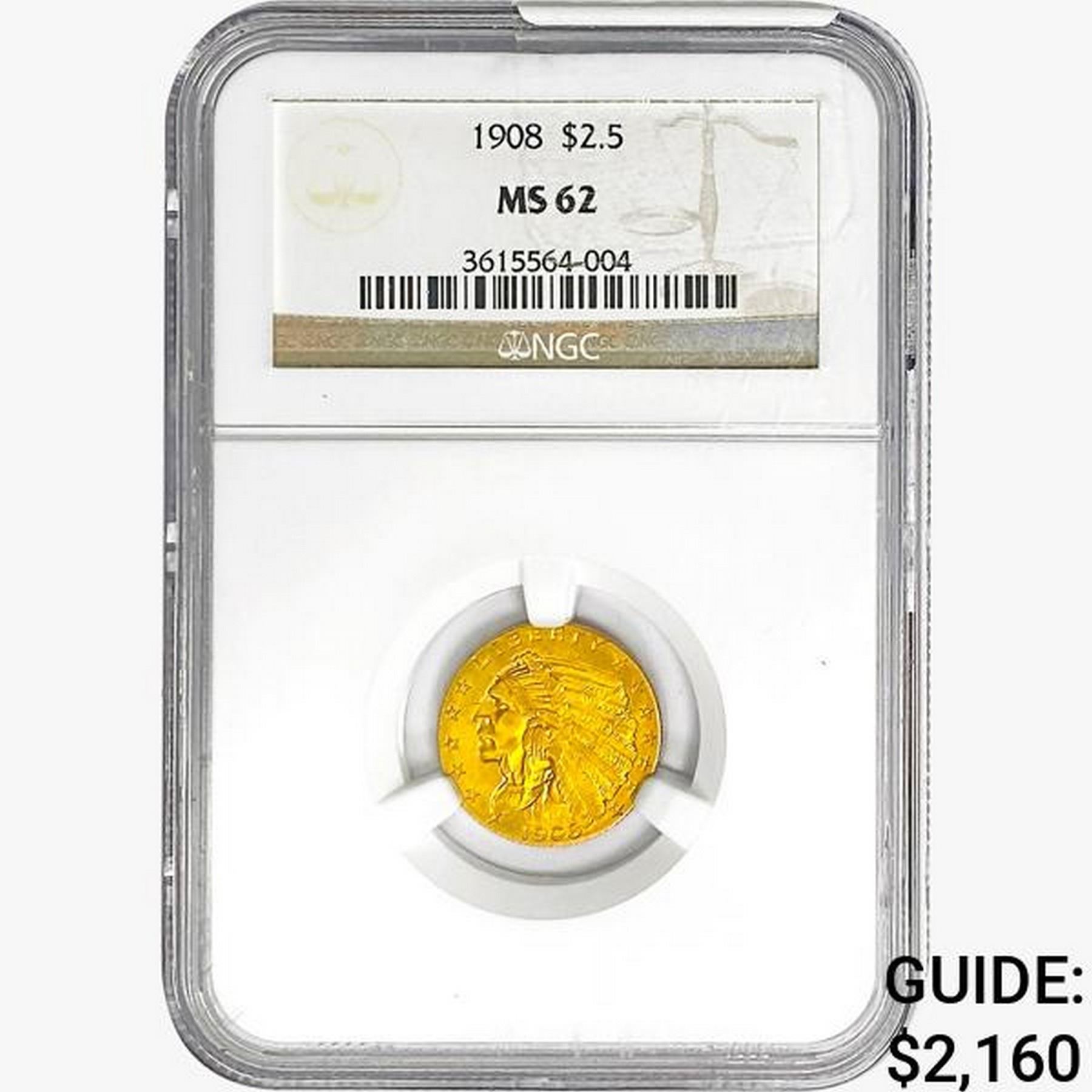 1908 $2.50 Gold Quarter Eagle NGC MS62