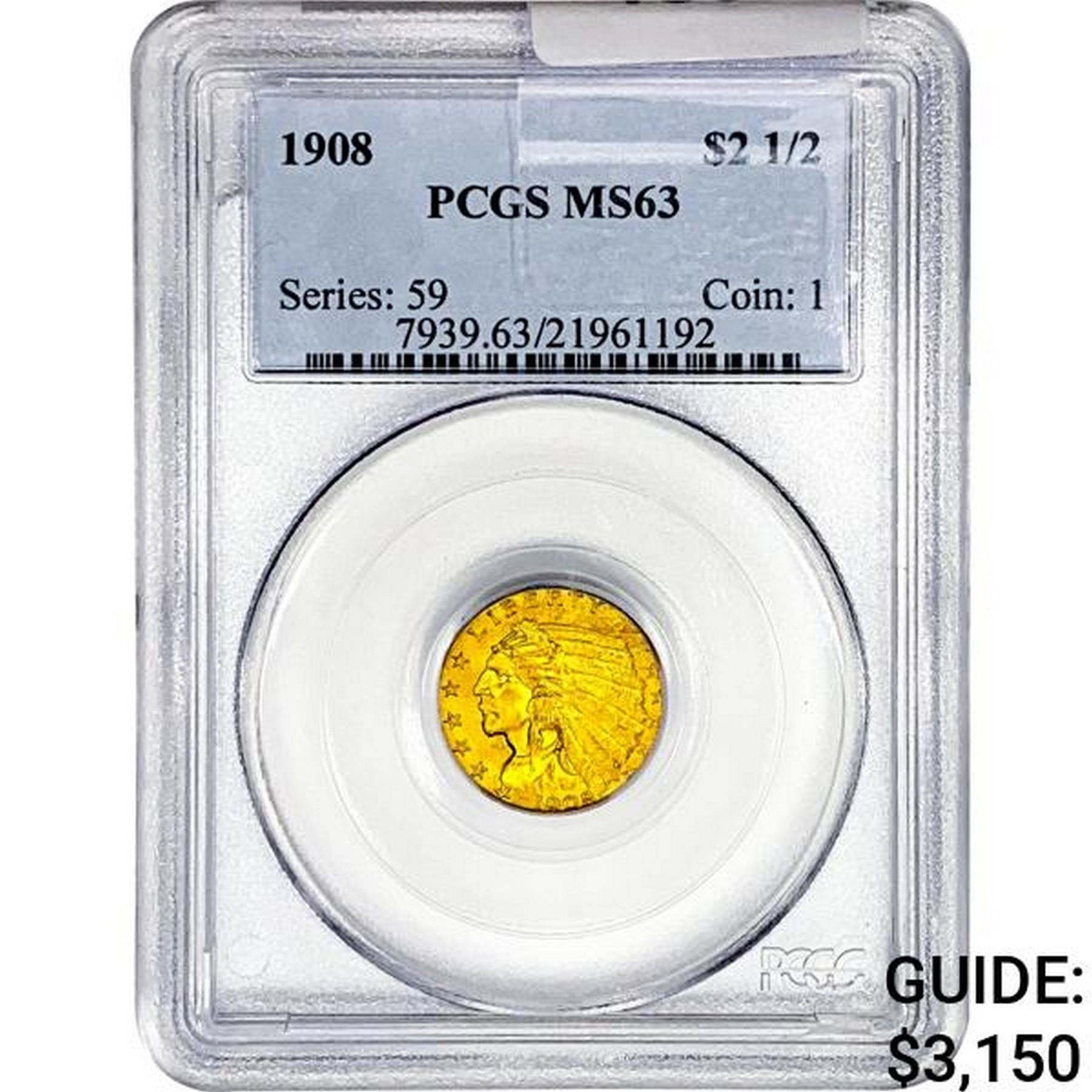 1908 $2.50 Gold Quarter Eagle PCGS MS63