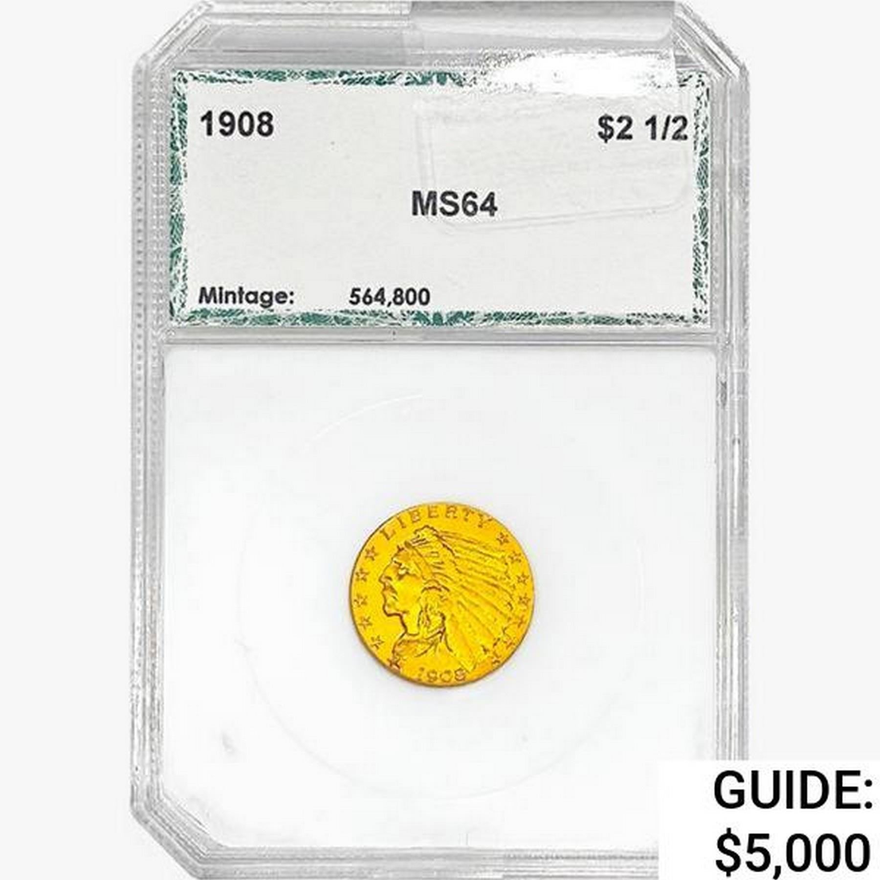 1908 $2.50 Gold Quarter Eagle PCI MS64