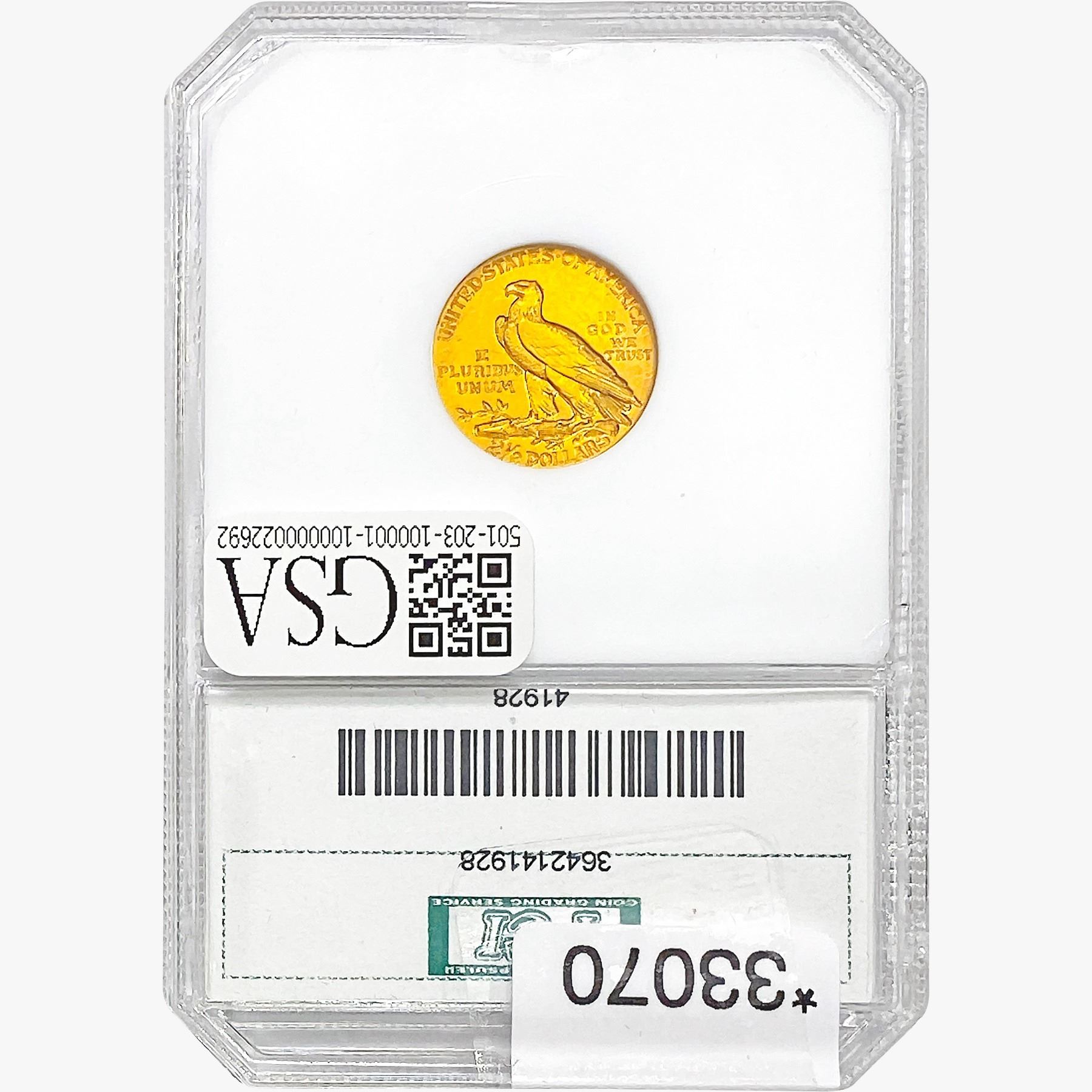 l. All non-certified coins and currency are guaranteed genuine, but are not guaranteed as to grade, since grading is a matter of opinion, an art and not a science, and therefore the description rendered by GSA or any third-party grading service may not agree with the opinion of others (including trained experts), and the same expert may not grade the same item with the same grade at two different times. GSA may, but is not obligated to, express an opinion as to non-certified numismatic items, in GSA’s opinion, or by its employees’ experience and the current interpretation of the American Numismatic Association’s standards as of the date the catalog was prepared. There is no guarantee or warranty expressed or implied that the grading opinions utilized by GSA, if any, will meet the standards of any grading service at any time in the future.