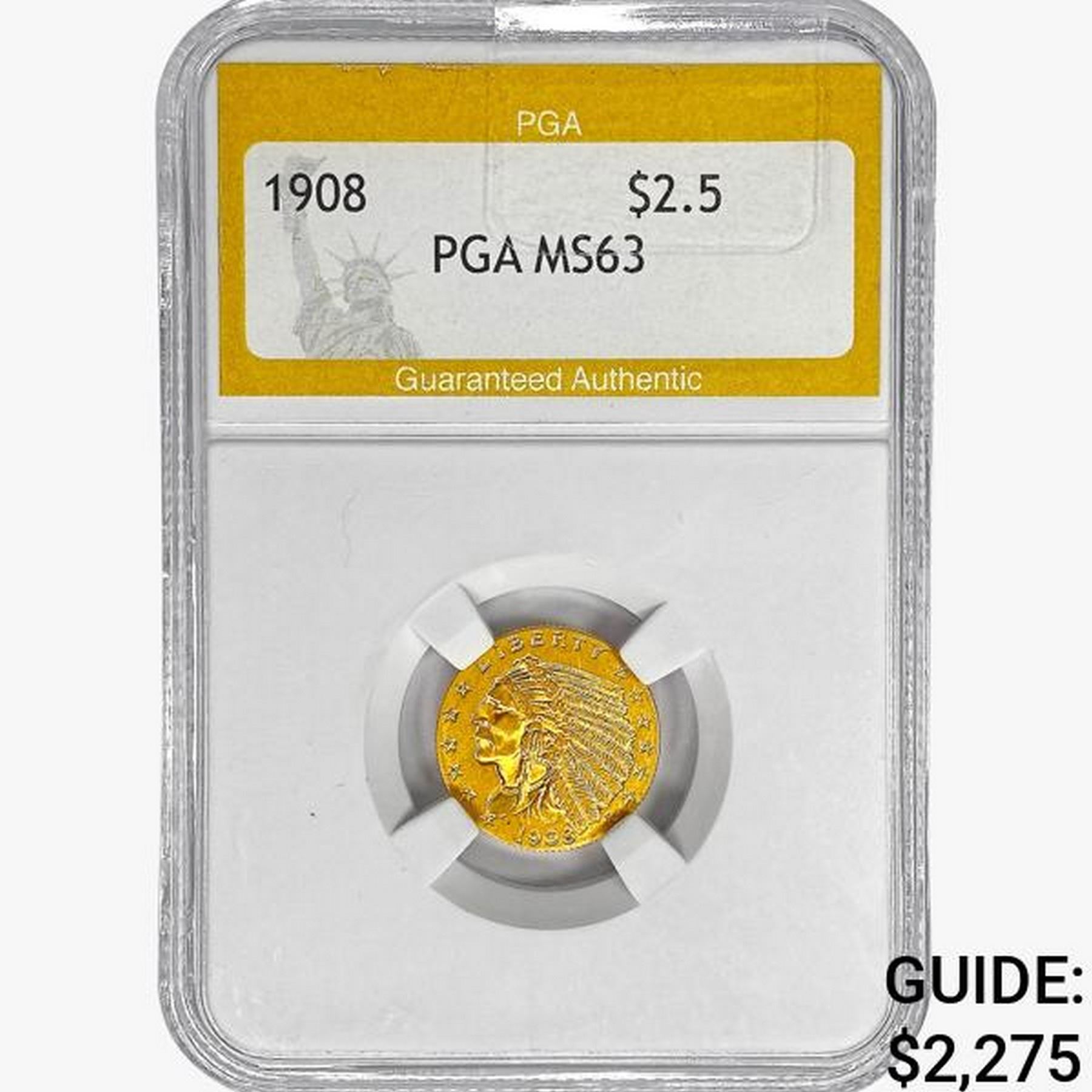 1908 $2.50 Gold Quarter Eagle PGA MS63