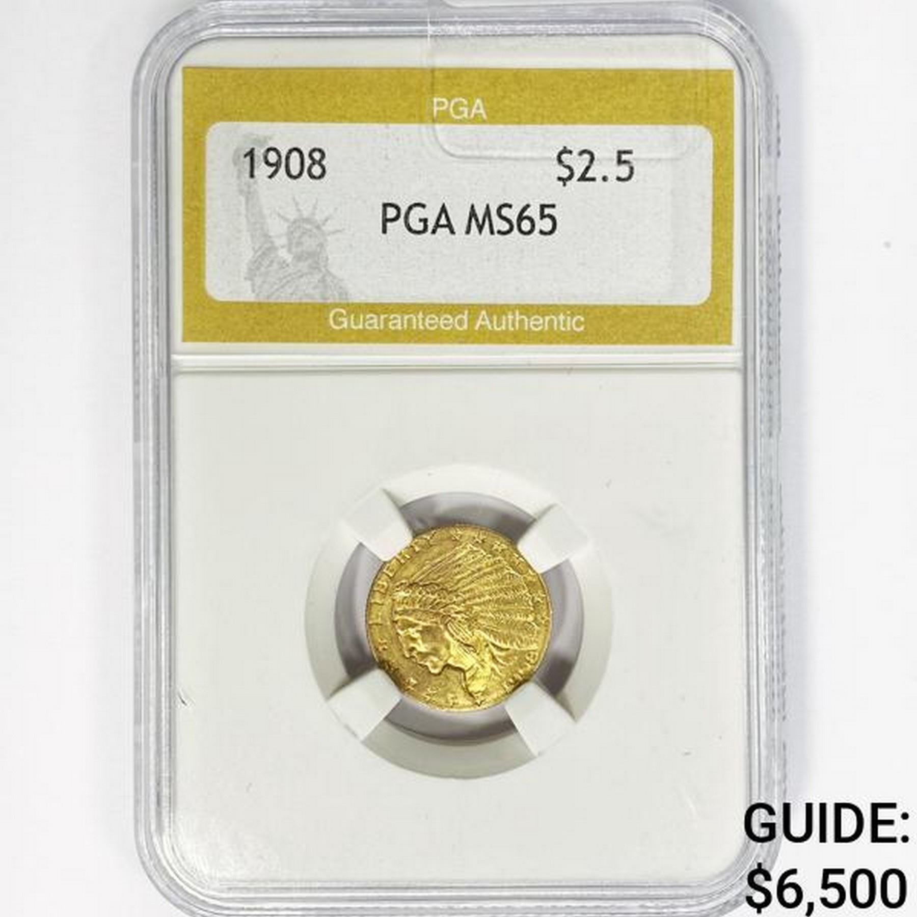 1908 $2.50 Gold Quarter Eagle PGA MS65