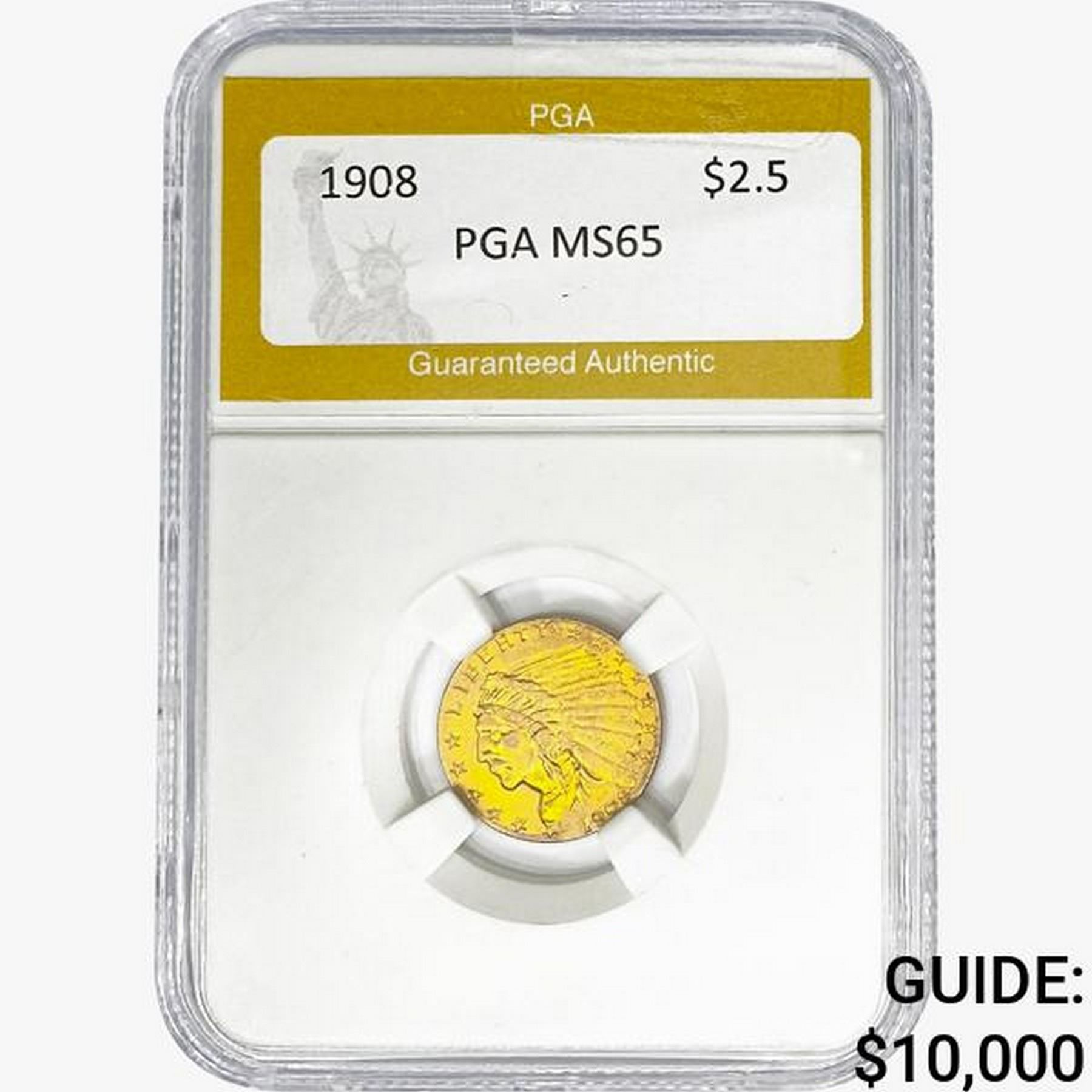 1908 $2.50 Gold Quarter Eagle PGA MS65
