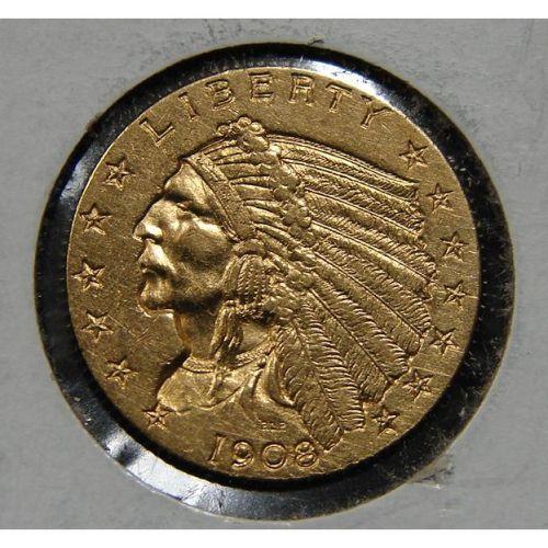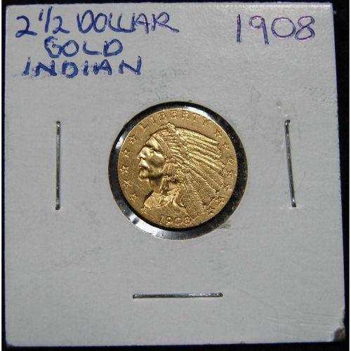 1908 $2 ½ U.S. INDIAN GOLD COIN.