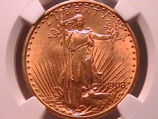 1908 $20 GOLD ST GAUDENS MS-63