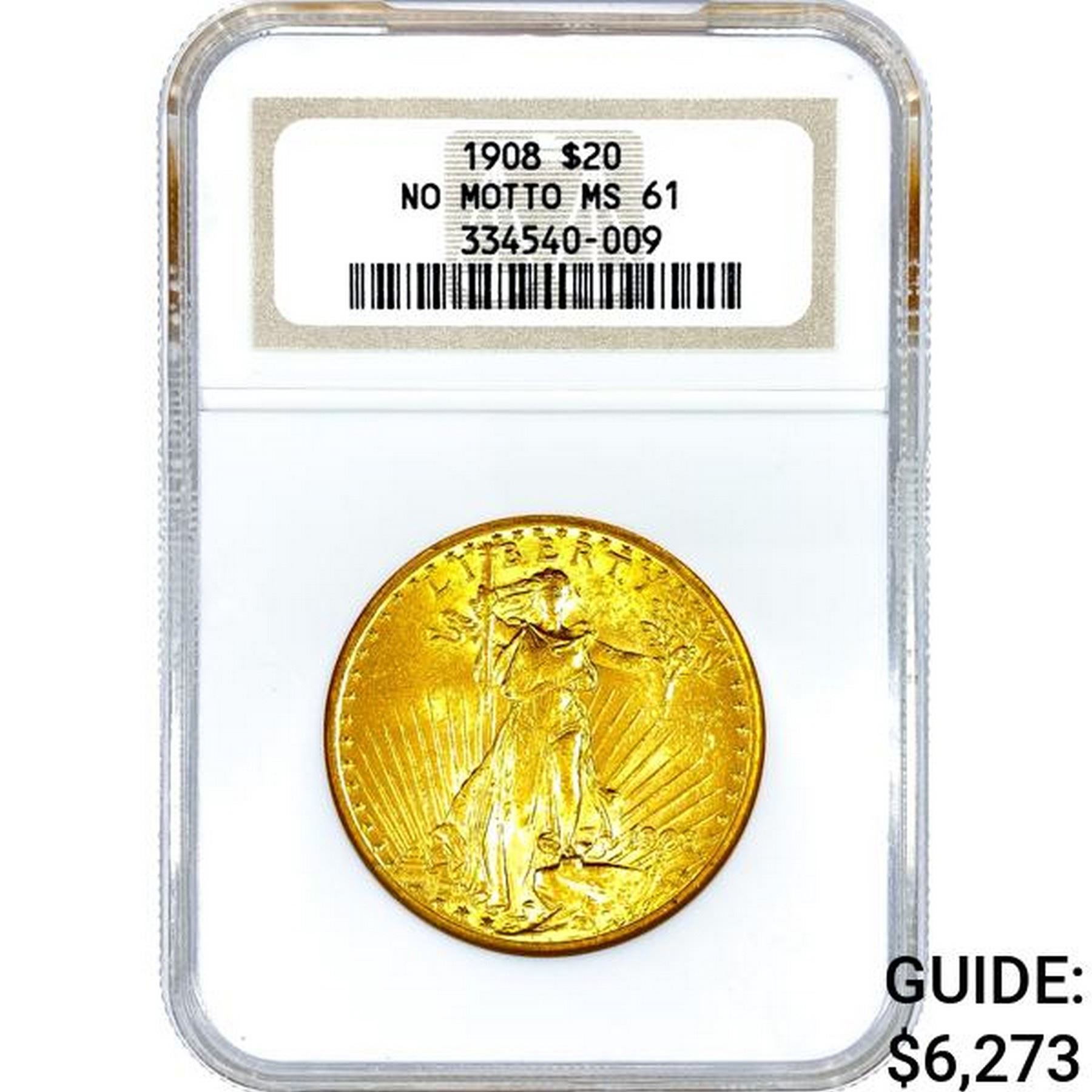 1908 $20 Gold Double Eagle NGC MS61 No Motto