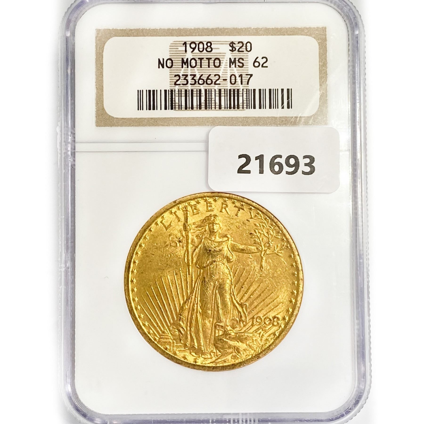 1908 $20 Gold Double Eagle NGC MS62 No Motto